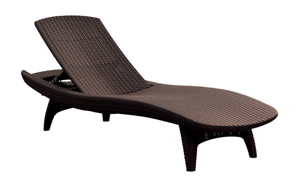 Плетіння під штучний ротанг, з якого виконаний шезлонг Pacific повністю повторює плетіння комплектів пластикових меблів виробництва групи компаній KETER, представлених в нашому інтернет-магазині.